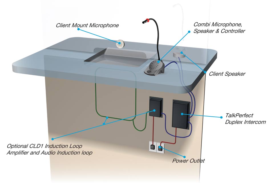 The TalkPerfect duplex intercom speech transfer not only comprises a full duplex intercom system, reinforcing communications from staff to customer and customer to staff with high quality amplified sound, but is also simple to install, does not require an external computer of software to set up, and once installed it is designed to function without further intervention.